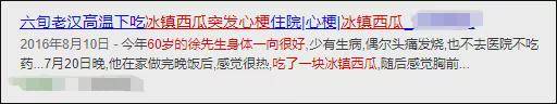类似的,炎热夏天吃冷饮、冰西瓜也可能诱发心梗,当然前提是你本身心血管不好。心脑血管最怕一冷一热刺激。