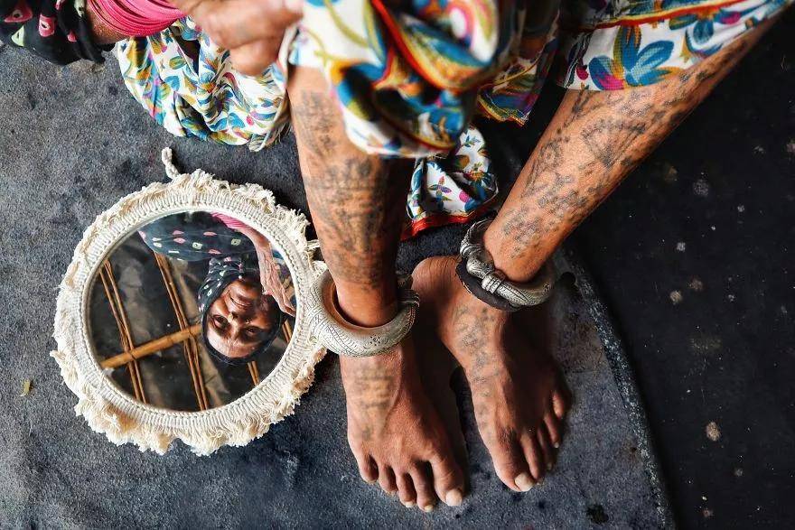 ******------------ 钦族是缅甸第七大民族 在钦邦南部的敏达镇区和马图比镇区一带 妇女有纹面的习俗 图形因地而异 一般从7、8岁开始 直到14、15岁才停止 纹面的药物是用烟锅 和一种叫作“额洛树”树叶的汁混合而成的溶液 纹面时用藤枝将药物刺进皮肉