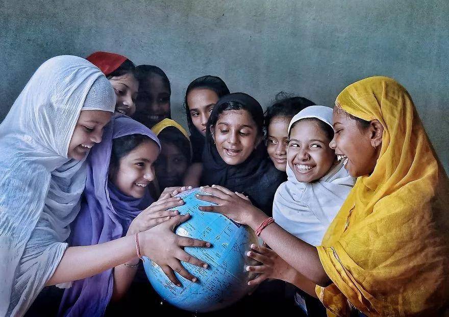 一群孩子围着地球仪开心的笑 地球仪对我们来说是再普通不过的一件事情 但是在一些地方 重男轻女的思想还是很严重的 家里如果只能供一个孩子读书 那一定是男孩优先 甚至一些地区 还觉得“女子无才便是德” 所以这个地球仪对她们来说不止是 教学的道具 更是一个新的开始