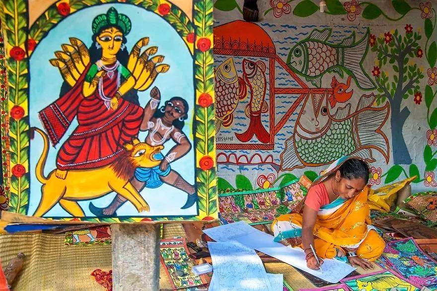 艺术家在西孟加拉邦的一个乡村中进行创作 艺术是没有界限的