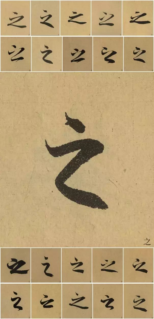 第一绝:“重”字不“重” 说起《兰亭序》里的一绝, 那不能不提其中的重字了。 其文及款字中共出现21个“之”字,字字不同,各逞美态。