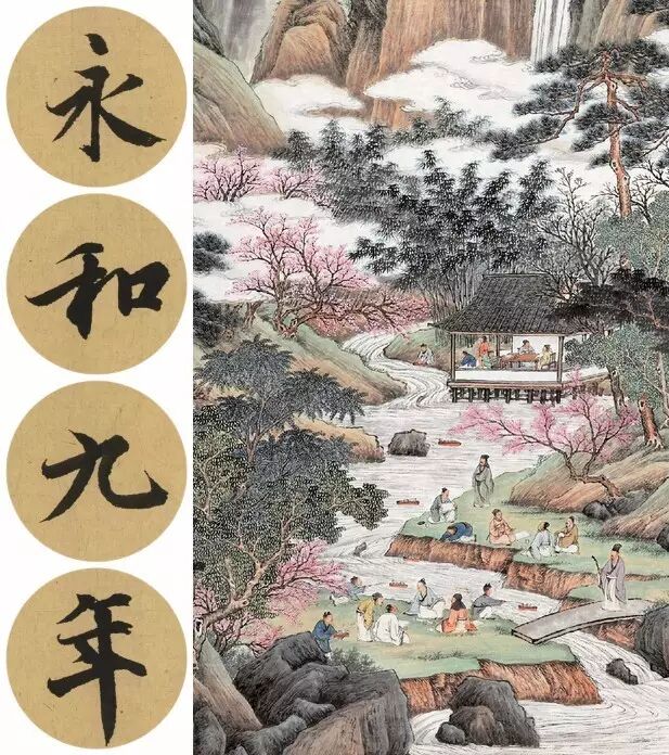 第一行书背后的风流韵事 永和九年, 王羲之在会稽山阴的兰亭, 组织了一场风雅集会。 清幽的山水、秀丽的风景 吸引了司徒谢安、 辞赋家孙绰、矜豪傲物的谢万、 高僧支道林等社会名流的捧场, 当然,羲之家的几个孩子 献之、凝之、涣之、玄之 也跟随父亲出来了。
