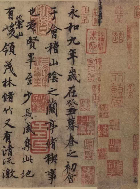 最能体现兰亭意韵的摹本: (以下为虞本《兰亭序》长卷,请读者将手机横过来看。)