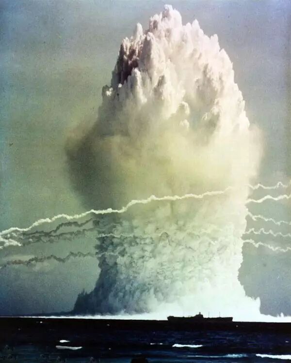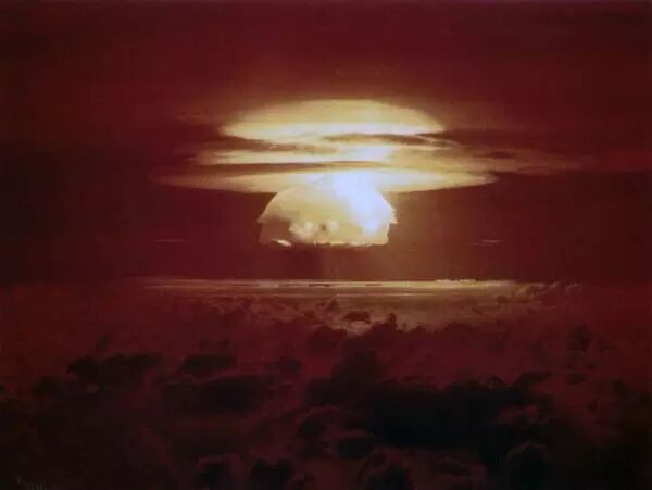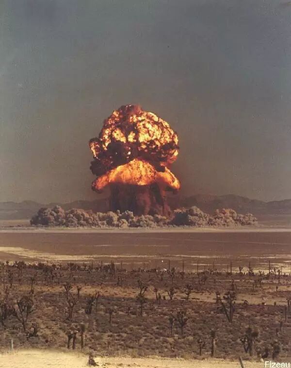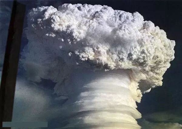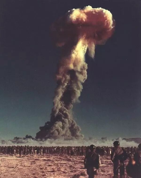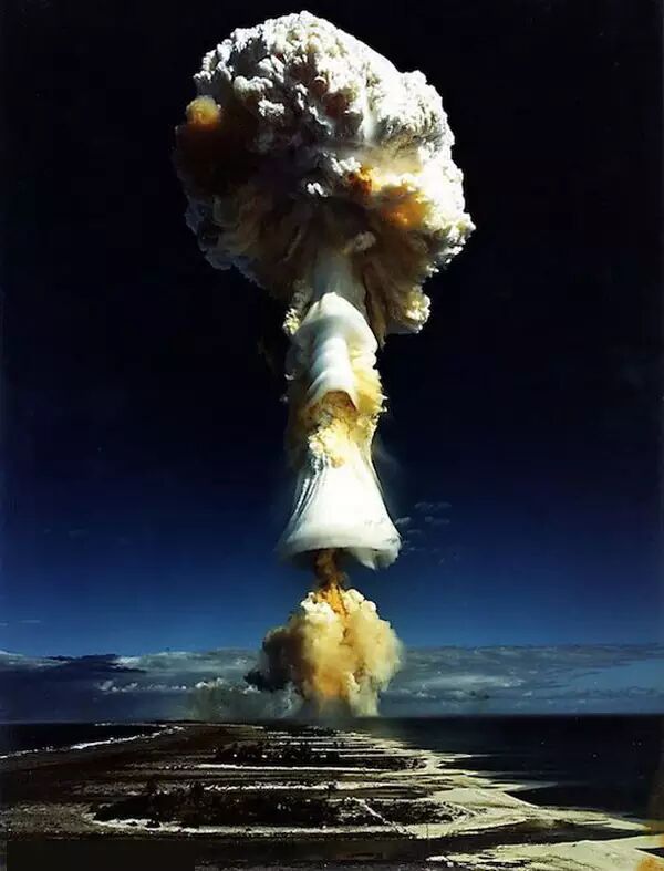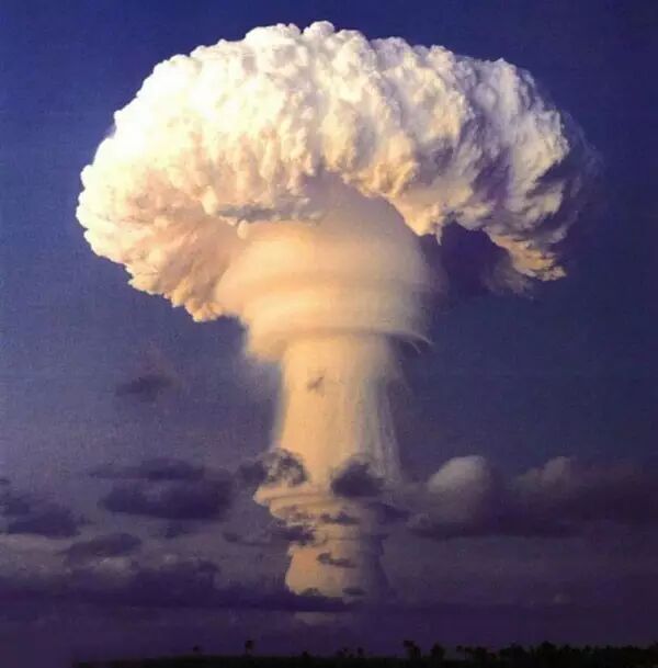 核爆炸(nuclear explosion)是核武器或核装置在几微秒的瞬间释放出大量能量的过程。核爆炸发生后,先是产生发光火球,继而产生蘑菇状烟云。这是核爆炸的典型征象。 核武器在距地面一定高度的空中爆炸时,高温高压弹体迅猛向四周膨胀并以X射线辐射加热周围的冷空气。 火球熄灭后形成上升的烟云。冲击波在爆心投影点附近地面的反射和负相的抽吸作用使得地面掀起巨大尘柱,上升的尘柱和烟云相衔接,形成高大的蘑菇状烟云。 根据爆炸当量、爆炸相对于地面、水面的位置,爆炸方式分为空中核爆炸、高空核爆炸、地面核爆炸、地下核爆炸和水下核爆炸等五种。 恐怖美丽的蘑菇云,媒体整理了全球核武器爆炸解禁照片,跟随历史君一起来看看: |